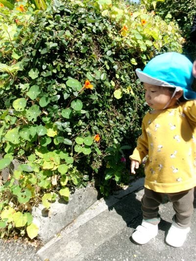 散歩コースにある花畑に沢山のちょうちょがいて興味津々で観察していましたよ☺️☘️