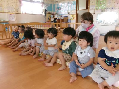 お散歩の前に朝のお集りです♪元気に歌ったり保育士の動きなどをじーっと見たり手を動かして表現したりしていました☺️🩷