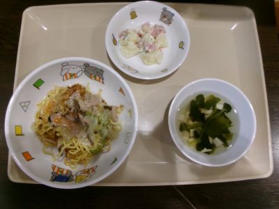 幼児食:あんかけ焼きそば、ジャーマンサラダ、すまし汁